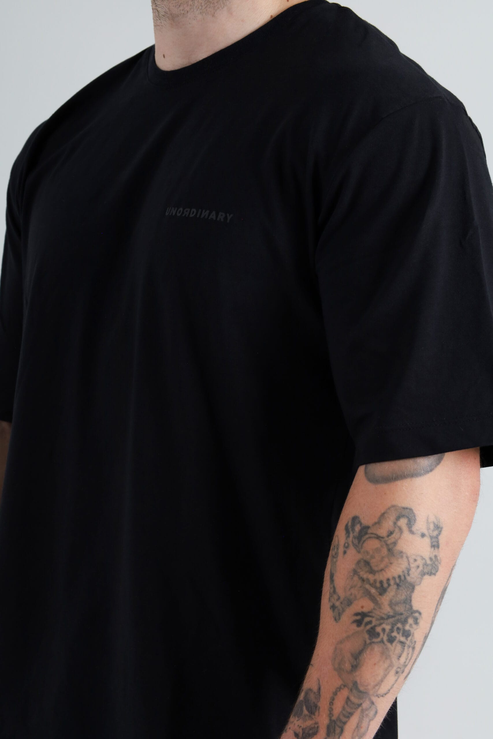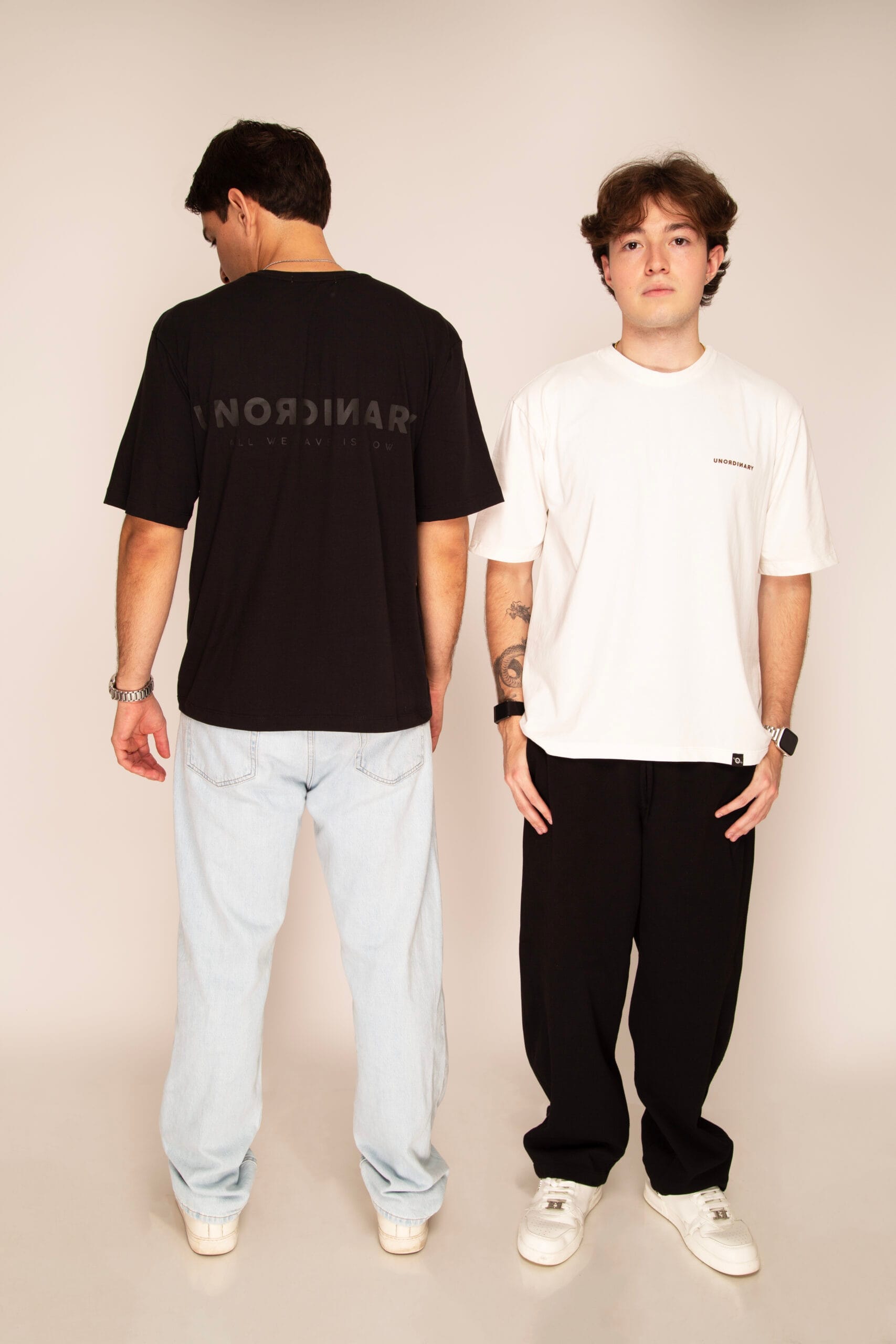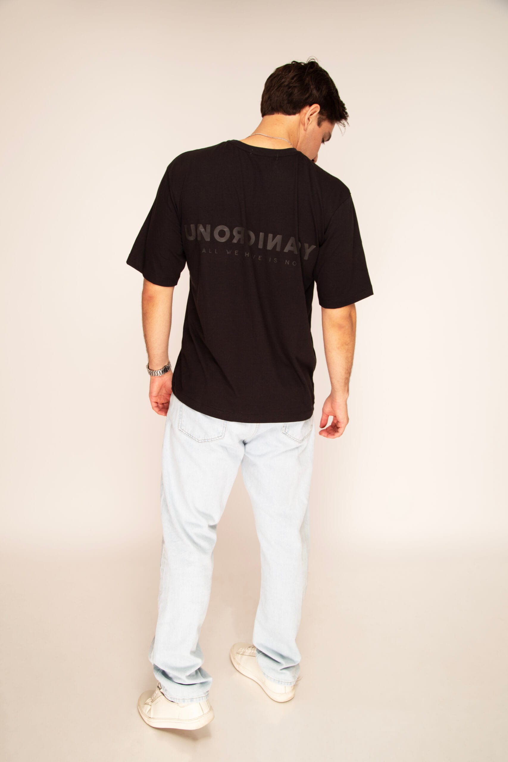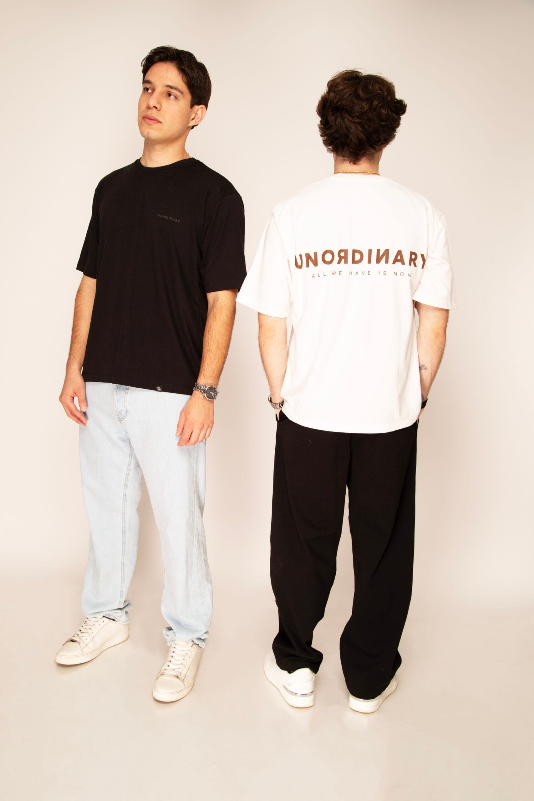 Corte oversize unisex. Estampado frontal y detrás en gris obscuro con el logotipo UNORDINARY. | Etiqueta tejida lateral con ícono de la marca. | Con cuello amplio.