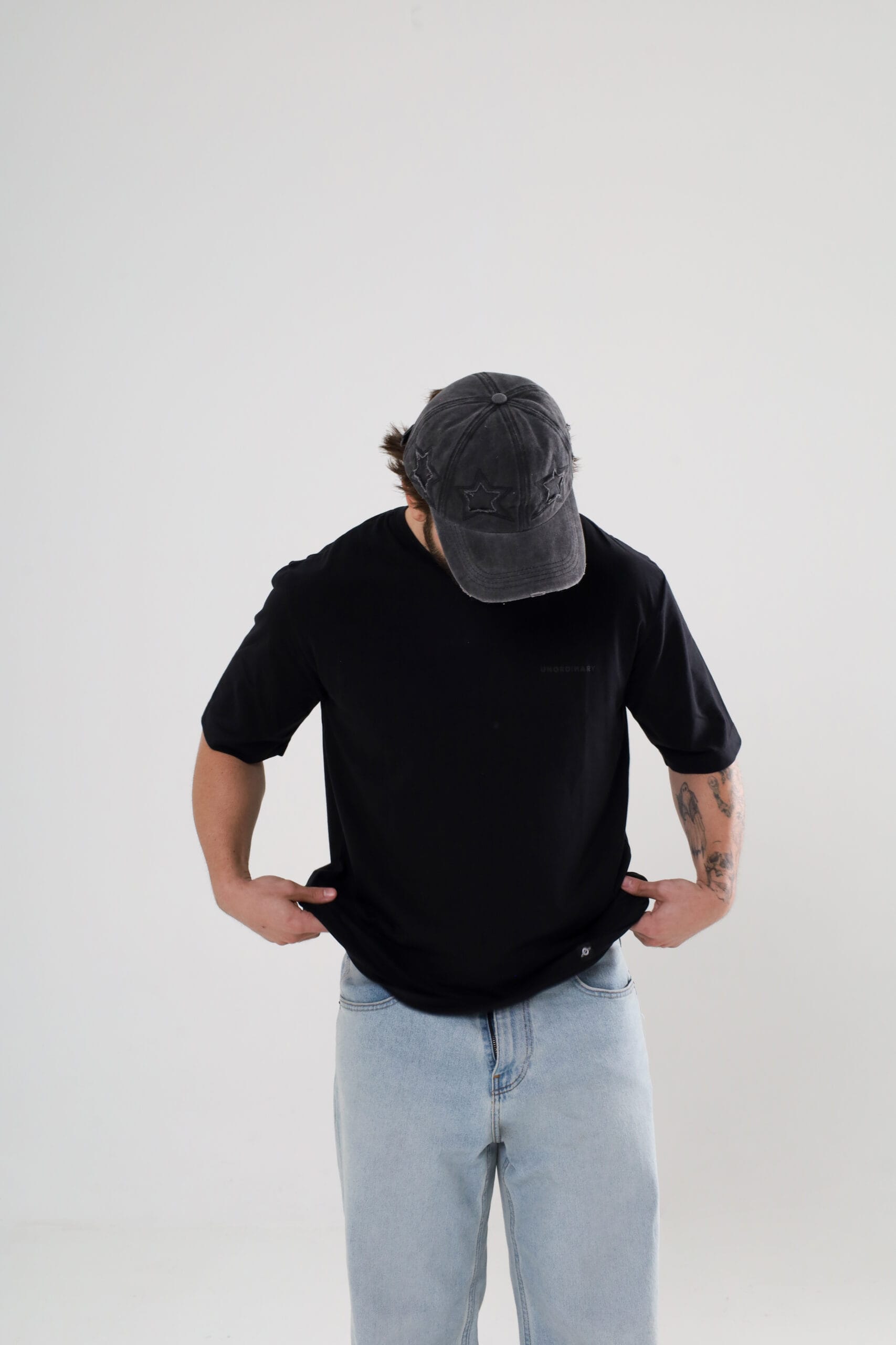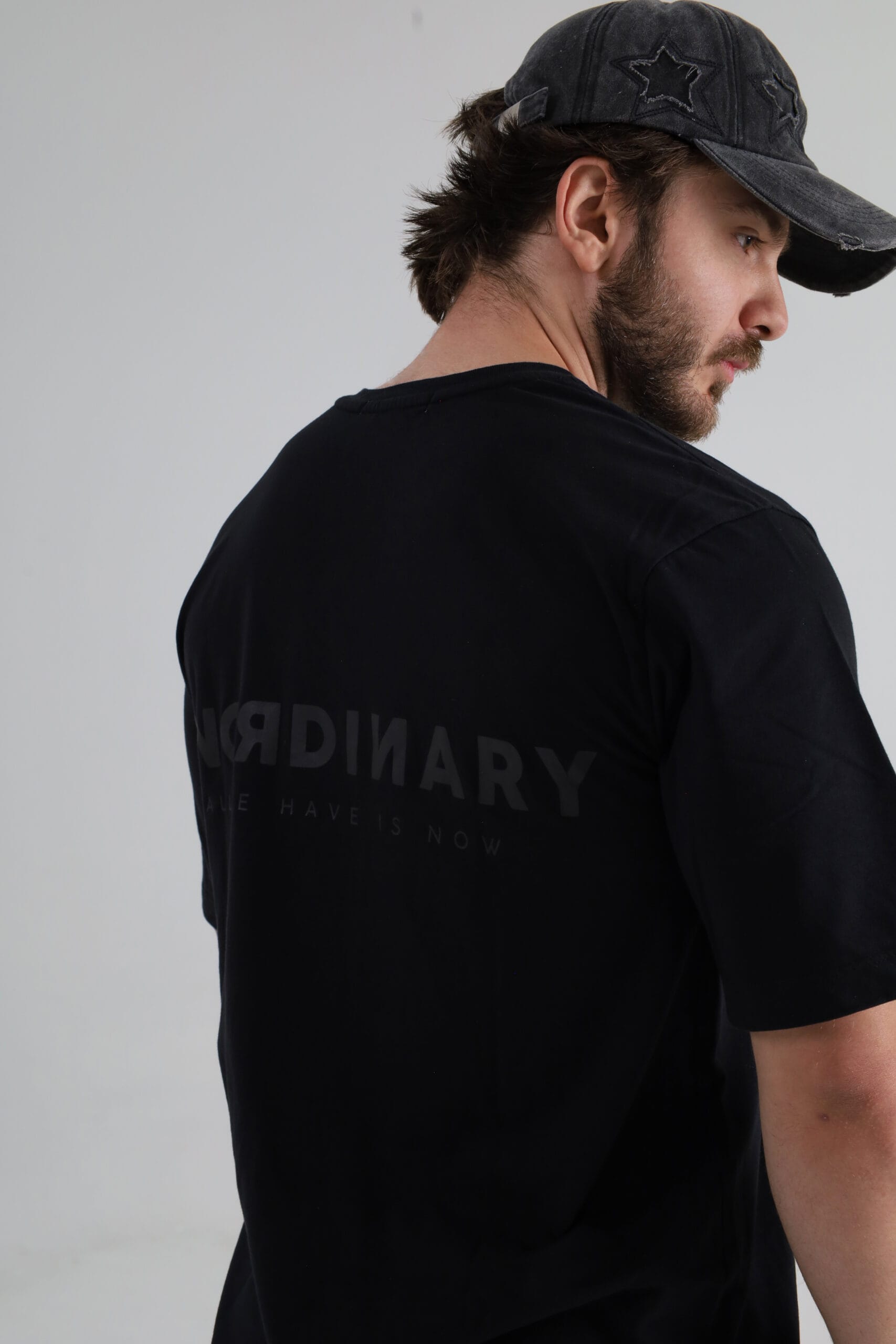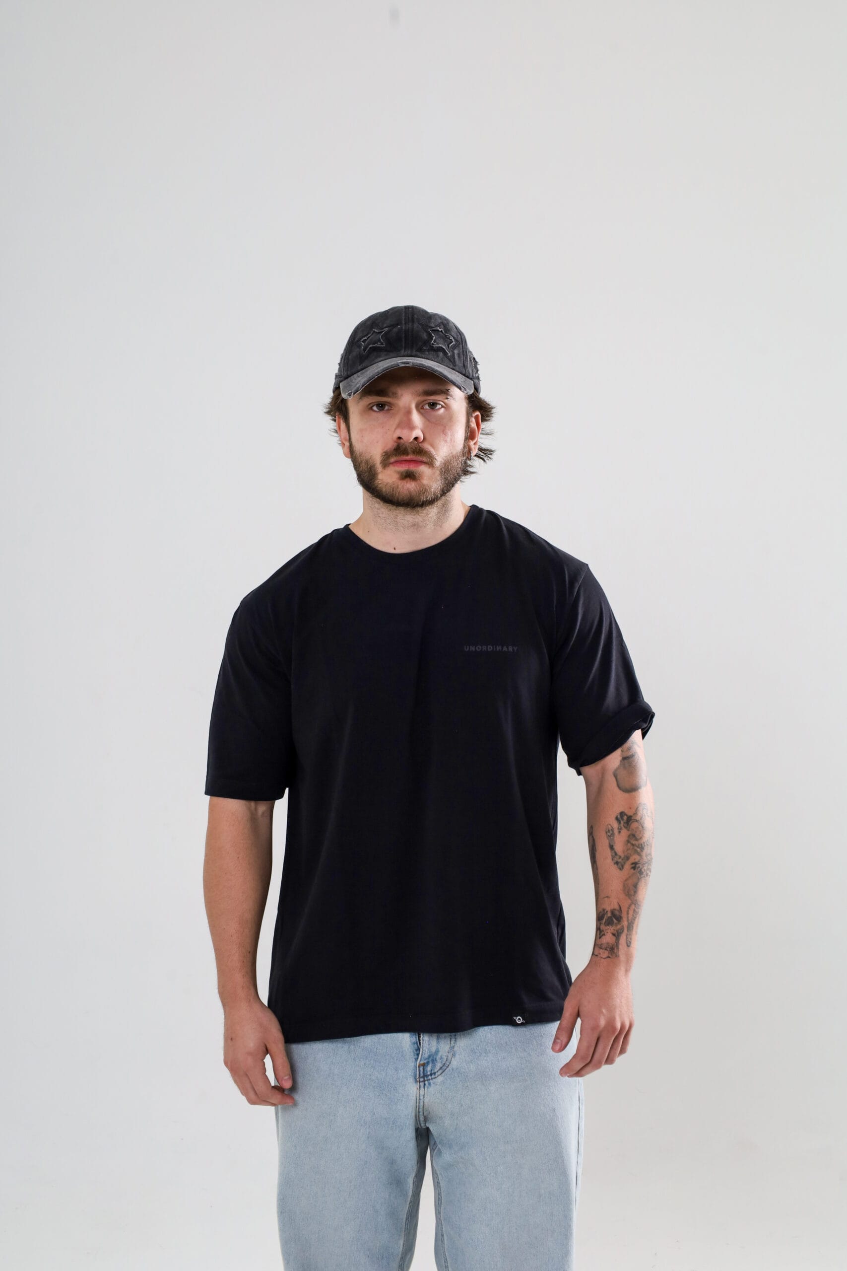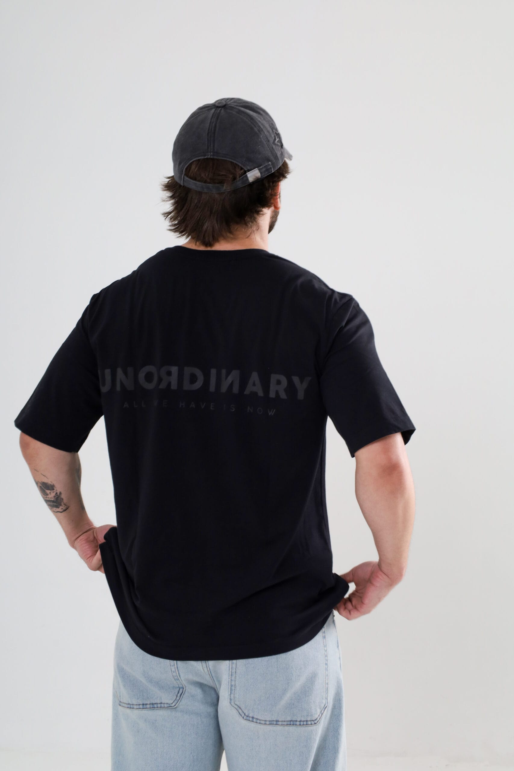 Corte oversize unisex. Estampado frontal y detrás en gris obscuro con el logotipo UNORDINARY. | Etiqueta tejida lateral con ícono de la marca. | Con cuello amplio.