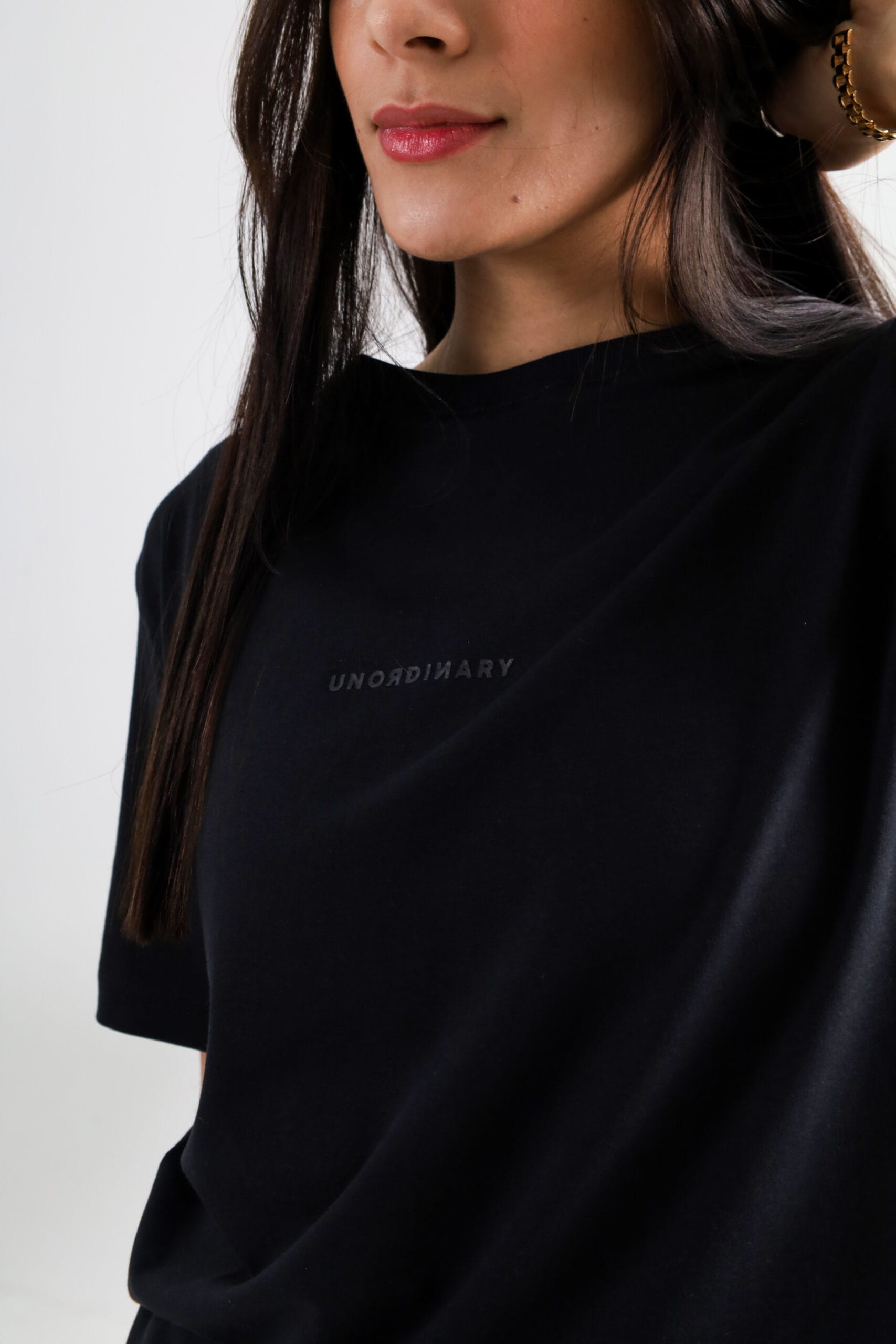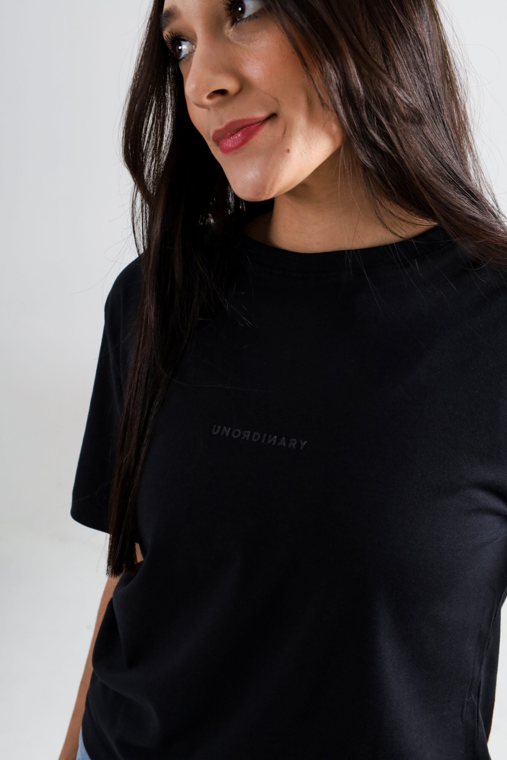 Corte regular unisex. Estampado frontal en gris obscuro con el logotipo UNORDINARY. | Etiqueta tejida lateral con ícono de la marca. | Con cuello amplio.